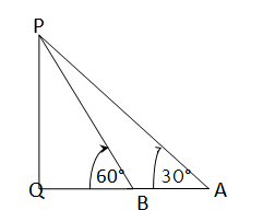 Let’s assume that from point A on the ground, the angle of elevation to the top P of a vertical pillar PQ is \(\angle\)PAQ = 30°. After moving 20 meters toward the base of the pillar and reaching point B, the angle of elevation becomes \(\angle\)PBQ = 60°. From right-angled triangle PAQ: \[ \tan 30^\circ = \frac{PQ}{QA} \Rightarrow \frac{1}{\sqrt{3}} = \frac{PQ}{QA} \Rightarrow QA = \sqrt{3} \cdot PQ \] From right-angled triangle PBQ: \[ \tan 60^\circ = \frac{PQ}{QB} \Rightarrow \sqrt{3} = \frac{PQ}{QB} \Rightarrow QB = \frac{PQ}{\sqrt{3}} \] Now, \[ QA - QB = AB = 20 \Rightarrow \sqrt{3}PQ - \frac{PQ}{\sqrt{3}} = 20 \Rightarrow PQ\left(\sqrt{3} - \frac{1}{\sqrt{3}}\right) = 20 \Rightarrow PQ\left(\frac{3 - 1}{\sqrt{3}}\right) = 20 \Rightarrow PQ = 20 \cdot \frac{\sqrt{3}}{2} = 10\sqrt{3} \] \(\therefore\) Height of the pillar = PQ = \(10\sqrt{3}\) meters Distance from point A to the pillar = QA = \(\sqrt{3} \cdot PQ = \sqrt{3} \cdot 10\sqrt{3} = 30\) meters.