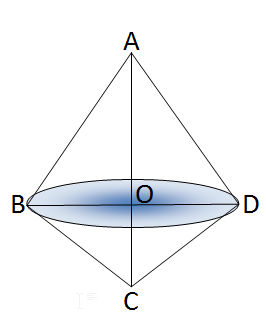 Q.A right-angled triangle has two sides adjacent to the right angle measuring 4 cm and 3 cm. If the triangle is rotated once completely around its hypotenuse as the axis, find the volume of the solid formed.