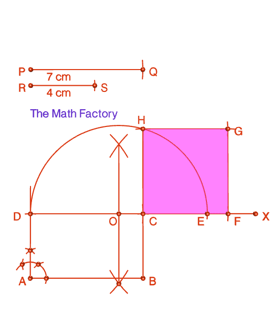 2. Draw a square having the same area as a rectangle of length 10 cm and width 5 cm. (Only construction marks are required.)