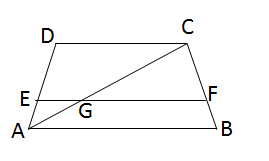 Let ABCD be a trapezium where AB ∥ DC. A straight line is drawn parallel to AB, intersecting AD and BC at points E and F respectively. **To prove:** AE : ED = BF : FC **Construction:** Join points A and C, and let this line intersect EF at point G. **Proof:** In triangle ∆ADC, since DC ∥ EG, By Thales' Theorem, we get: \[ \frac{AE}{ED} = \frac{AG}{GC} \quad \text{---(i)} \] Again, in triangle ∆ACB, since AB ∥ GF, By Thales' Theorem, we get: \[ \frac{AG}{GC} = \frac{BF}{FC} \quad \text{---(ii)} \] From (i) and (ii), we conclude: \[ \frac{AE}{ED} = \frac{BF}{FC} \Rightarrow AE : ED = BF : FC \] ( proved)