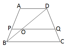 When diagonal BD is drawn, it intersects PQ at point O. In triangle \( \triangle ABD \), since \( AD \parallel PO \), ∴ \( DO : OB = AP : PB = 2 : 1 \) Again, in triangle \( \triangle DBC \), since \( BC \parallel OQ \), ∴ \( DQ : QC = DO : OB = 2 : 1 \)