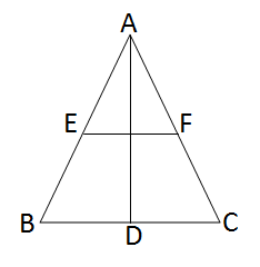 \(\because\) E and F are the midpoints of AB and AC respectively, \(\therefore\) BC = 2 × EF = 2 × 3 cm = 6 cm. Again, since AD ⊥ BC, \(\therefore\) D is the midpoint of BC. \(\therefore\) BD = \(\frac{1}{2}\) × BC = 3 cm.