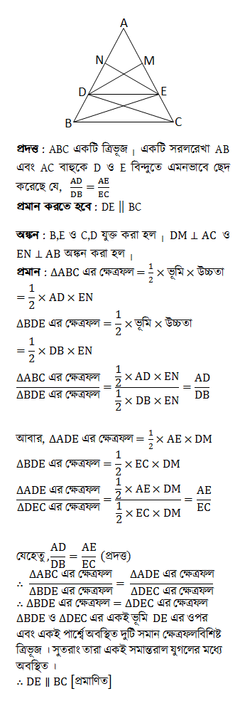 1. A straight line that divides two sides of a triangle in the same ratio is parallel to the third side.