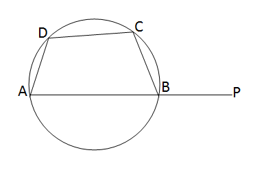 Let ABCD be a cyclic quadrilateral in which the side AB is extended up to point P. We need to prove that the exterior angle \(\angle\)CBP is equal to the interior opposite angle \(\angle\)ADC. Proof: On the extended side AP, BC stands at point B. \(\therefore \angle\)CBP + \(\angle\)ABC = 180\(^\circ\) Again, since ABCD is a cyclic quadrilateral, \(\therefore \angle\)ADC + \(\angle\)ABC = 180\(^\circ\) \(\therefore \angle\)CBP + \(\angle\)ABC = \(\angle\)ADC + \(\angle\)ABC That is, \(\angle\)CBP = \(\angle\)ADC (Proved)
