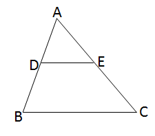 In triangle \( \triangle ABC \), DE is parallel to BC. ∴ \( \frac{AD}{AB} = \frac{DE}{BC} \) Or, \( \frac{AB - BD}{AB} = \frac{DE}{BC} \) Or, \( \frac{20 - 14}{20} = \frac{DE}{BC} \) Or, \( \frac{DE}{BC} = \frac{6}{20} = \frac{3}{10} \) ∴ \( DE : BC = 3 : 10 \)