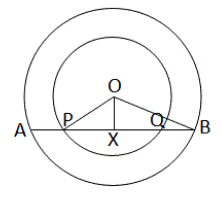 A perpendicular OX is drawn from point O to AB.