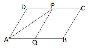 If a line PQ is drawn through point P parallel to DA, then the parallelogram ABCD = \( 2 \times \) parallelogram AQPD [because P is the midpoint of CD] = \( 2 \times 2 \times \triangle APD \) [because AP is the diagonal of parallelogram AQPD] = \( 4 \times 25 \) square cm = 100 square cm.