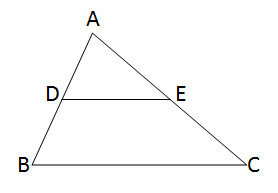 Area of triangle \(\triangle ADE\) = \(\frac{1}{4} \times\) area of triangle \(\triangle ABC\) \(= \frac{1}{4} \times 36\) square cm \(= 9\) square cm.