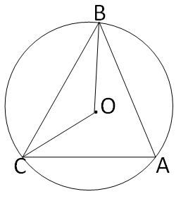 The central angle ∠BOC subtending arc BC = 2 × inscribed angle ∠BAC = 2 × 50° = 100° Also, in triangle BOC, OB = OC = radius of the circle ∴ ∠OBC = ∠OCB Now, ∠OBC + ∠OCB + ∠BOC = 180° ⇒ ∠OBC + ∠OBC + 100° = 180° ⇒ 2∠OBC = 180° − 100° = 80° ⇒ ∠OBC = 40° ∴ The measure of ∠OBC is 40°.